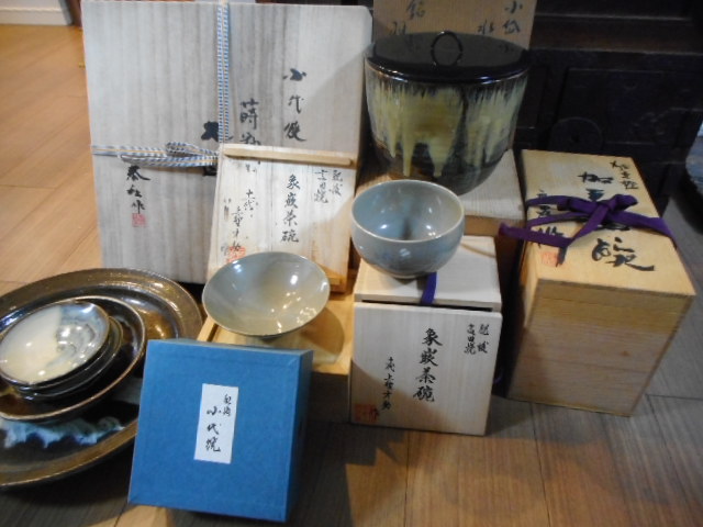 一階、二階と沢山のお茶道具がございました。中でも熊本を代表する焼物「小岱焼」のお道具が沢山ありました。
