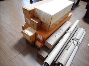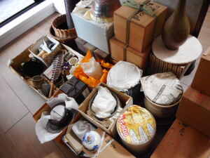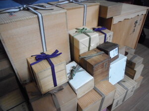 二時間ほどかけ、作家や書付のあるものなど一点ずつ個別に買取り価格を提示できるものと、お稽古道具などでまとめての評価になるのですが箱に入っているもの、さらには箱も無く消耗品なども含めまとめられるものとに仕分けをさせていただきました。茶掛けなどを中心に掛軸も同じように仕分けさせていただきました。