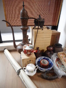 また、お茶道具以外にも古道具・骨董品類として、陶磁器類は食器類、壺類や置物、掛軸などや外国工芸品とまとめてですが評価させていただきました。(※当店ではお茶道具以外にも古道具・骨董品の買取りもしております。)