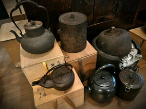 内容は、①お茶碗、②水指や建水、皆具類、③金物系のお茶道具、釜や水次、鉄瓶など、④細かいお道具では、茶入や棗、蓋置、香合、茶杓など、とお道具の種類ごとに分けて価格をつけさせていただきました。