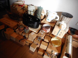 ご自宅にある沢山のお茶道具を処分したいとのことでした。いつものように一点ずつ評価できるお道具と、まとめての評価になるお道具を仕分けさせていただきました。