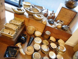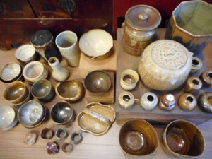 お茶道具では、茶碗、水指、茶入などを中心に、他には雑器類、細工物の置物、花瓶が沢山ございました。