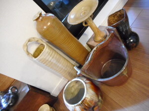 当日、お道具が置かれているお部屋へ案内していただくと沢山の焼物が目の前にズラリと並んでおりました。一目見て高取焼が中心であると判断できました。私の好きな焼物の一つです!胸が高鳴りじっくり拝見させていただきました。時代としては近代に入ってからのもので、お話をおうかがいしますと、ご先祖様が窯に関わっておられたようでその時のものということが解りました。