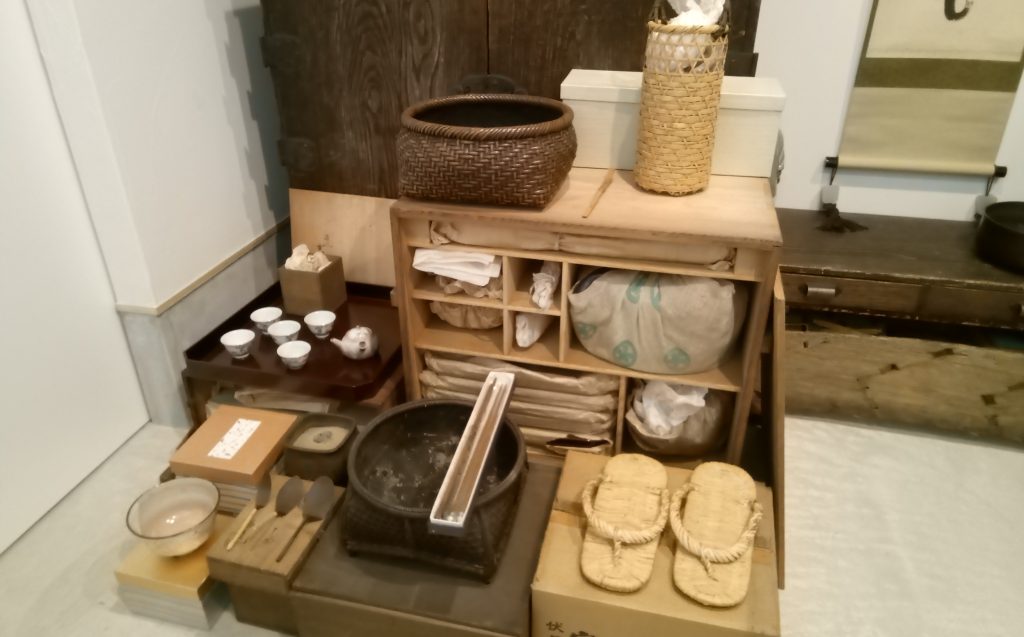お茶道具類では懐石道具、御膳、御茶碗、莨盆、炭斗、花籠、灰匙、火箸、火入、草履などでした。また煎茶道具もございました。(※当店ではお茶道具以外にも古道具・書画骨董品の買取りもしております。)