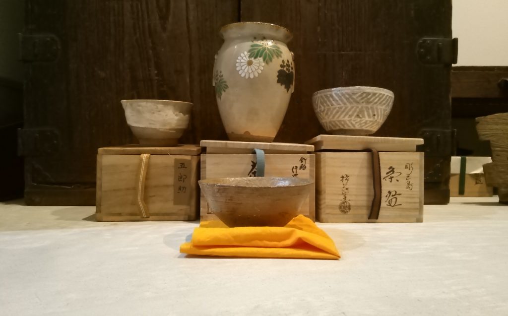この日もご納得いただきお譲りいただけることになりました。お譲りいただきました「伊羅保」のお茶碗は当店の「茶の湯喫茶」にて活躍の場を提供させてあげられればと思います。他のお道具につきましても次のほしい方のもとへと橋渡ししてまいります。