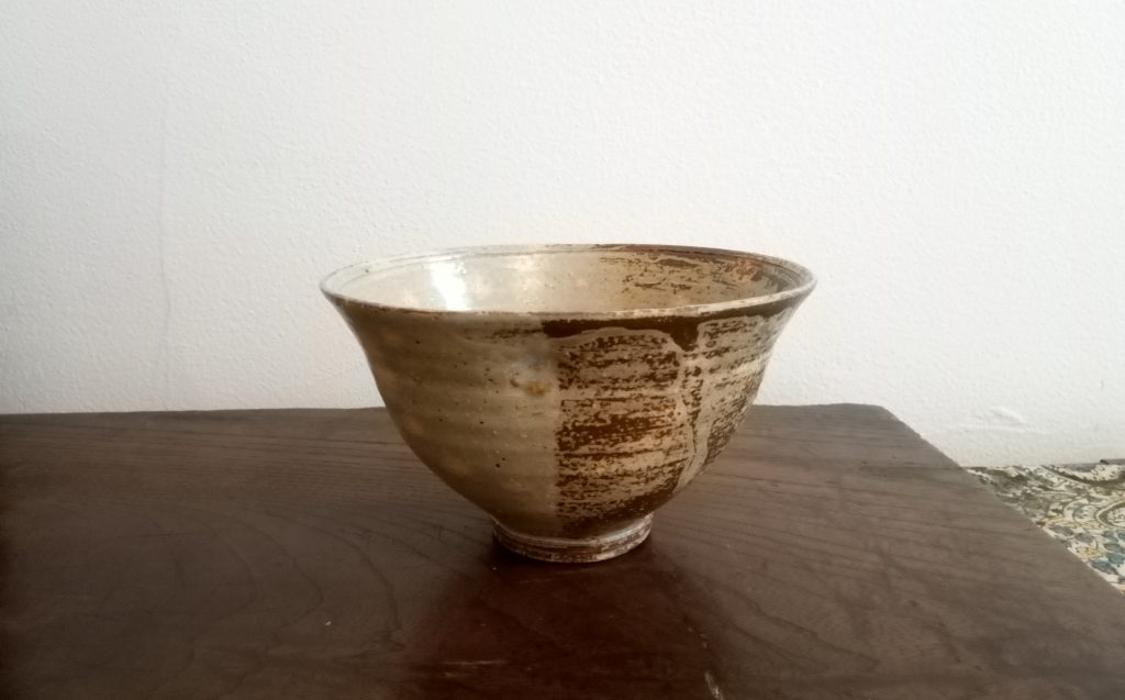 寒川義崇作の茶碗は伊羅保とありましたがニュアンスだけにとどまった作品でございました。しかし、器体は良く古曾部焼に高麗茶碗のエッセンスをバランスよく取り入れた一碗でした。