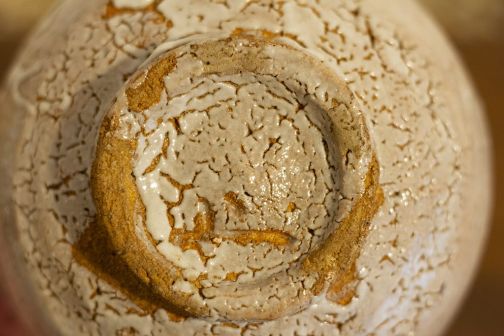 中里重利 一九三〇年、佐賀県唐津市生まれ。中里無庵(十二代太郎右衛門)の三男。父無庵に幼少の頃より師事。同五十二年、日展初入選。六十五年日展特選北斗賞。七十三年古唐津研究のために唐津市神田山口に築窯、「三玄窯」。七十六年、日展審査員。八十五年佐賀県芸術文化功労賞。八十六年日展評議員。二〇一五(平成二十七)年没。