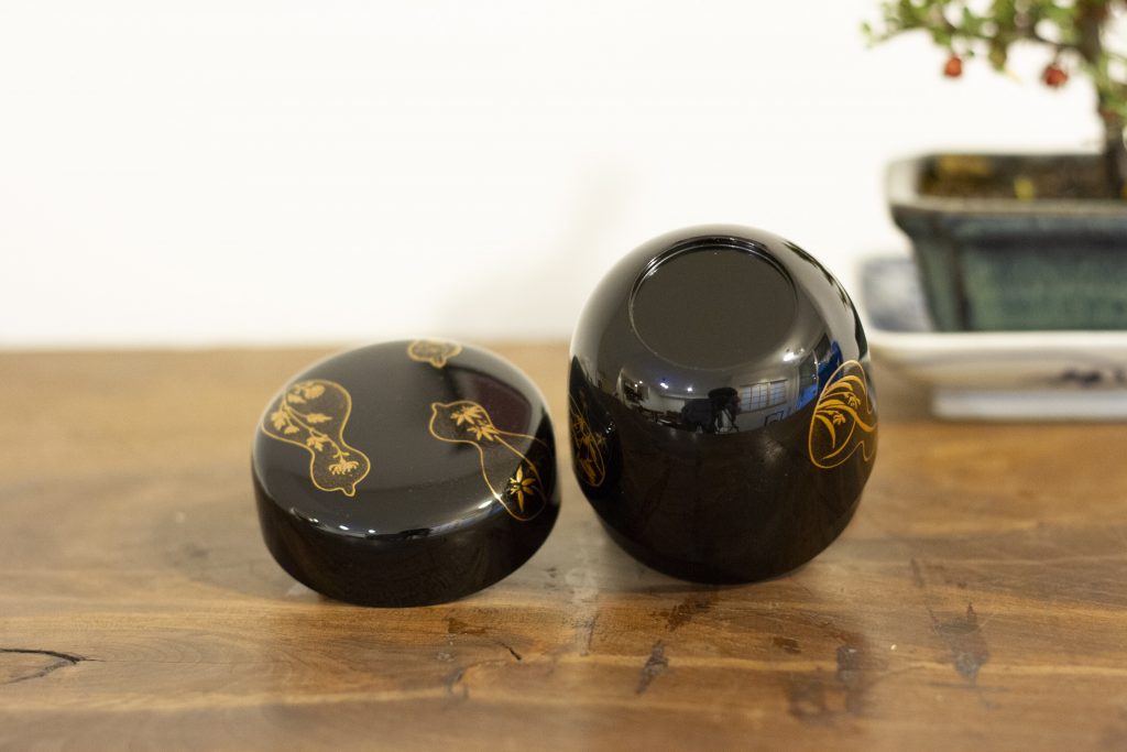 本作は、瓢箪を題材に四季の草花を瓢の枠内に描いた蒔絵作品です。瓢箪は縁起物で、四季にあったそれぞれのシーズンで使用できます。